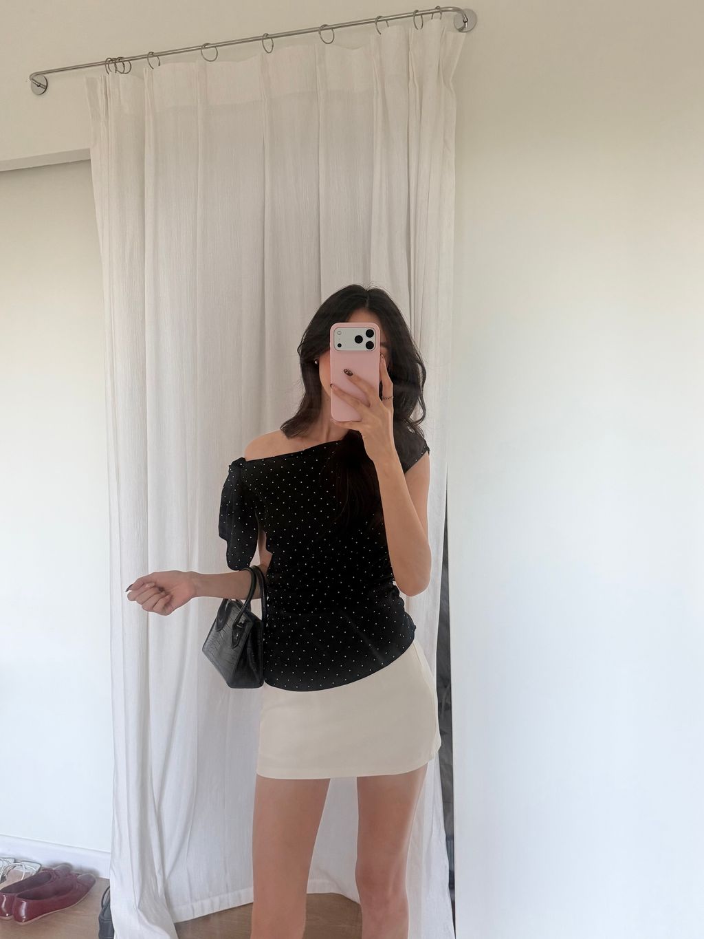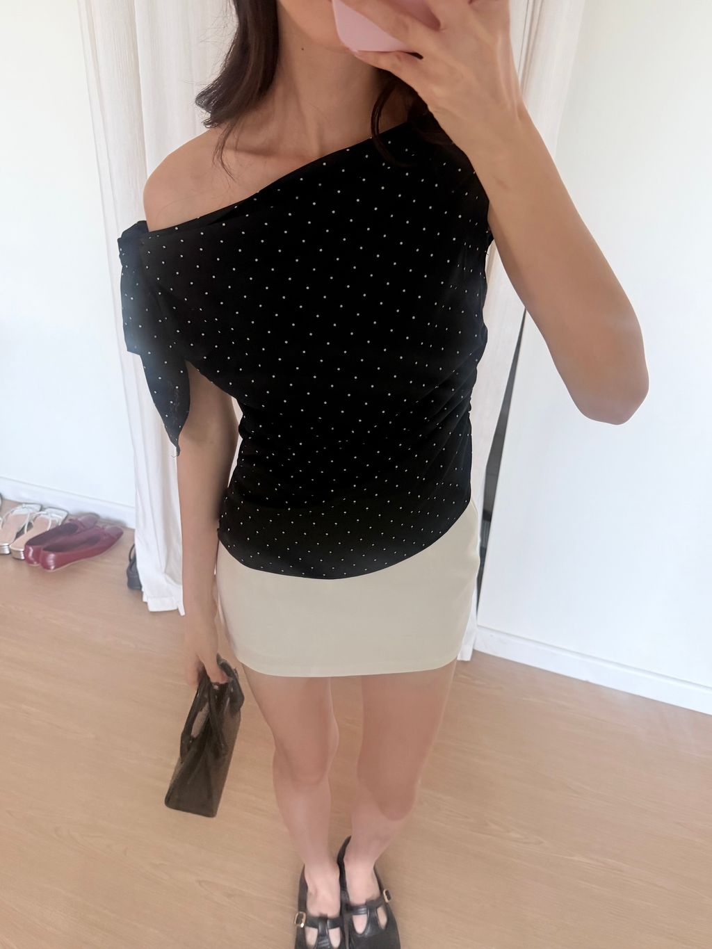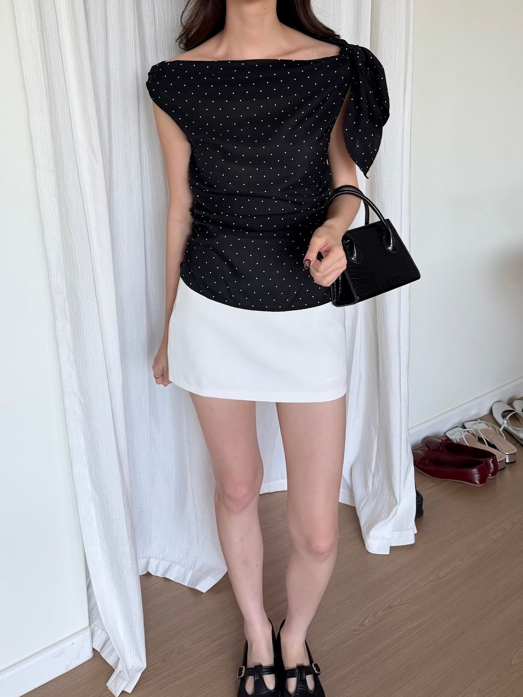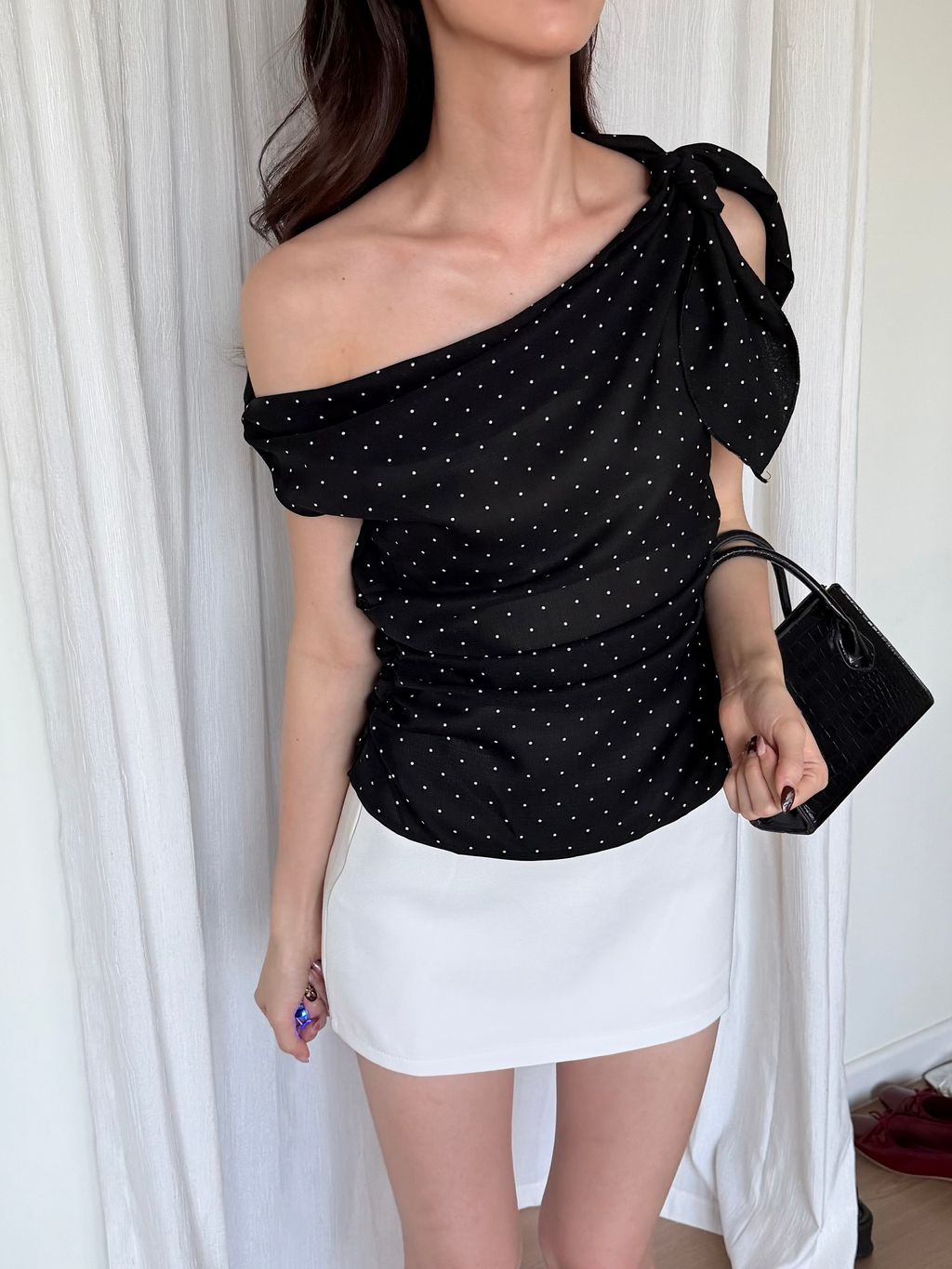 Polkadot Off Shoulder Top - Black
