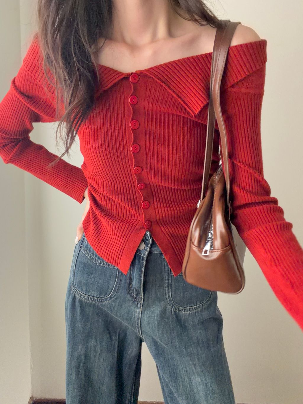 Foldover Off Shoulder Top - Red