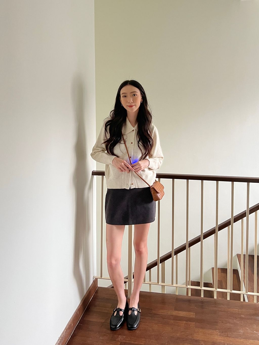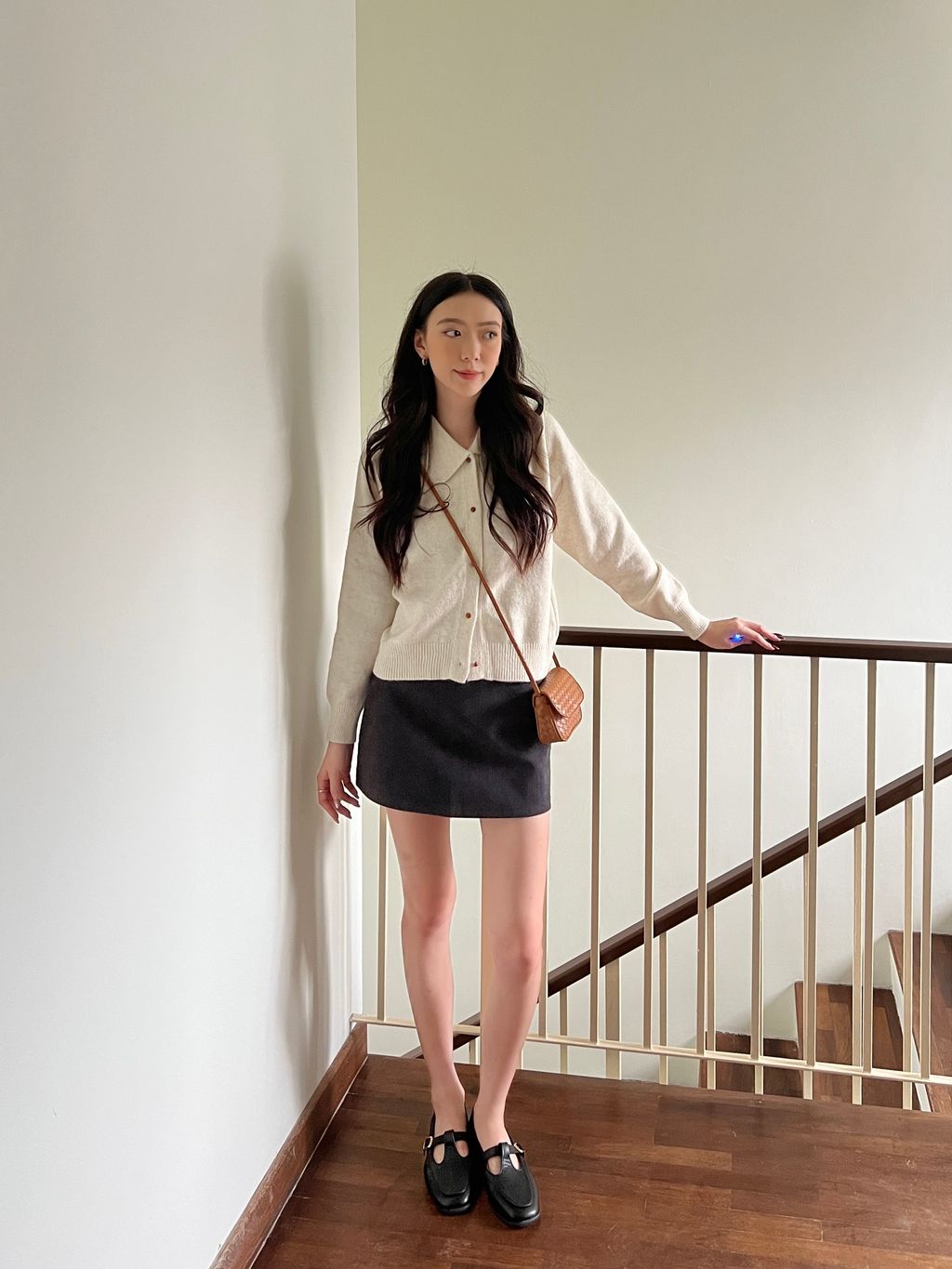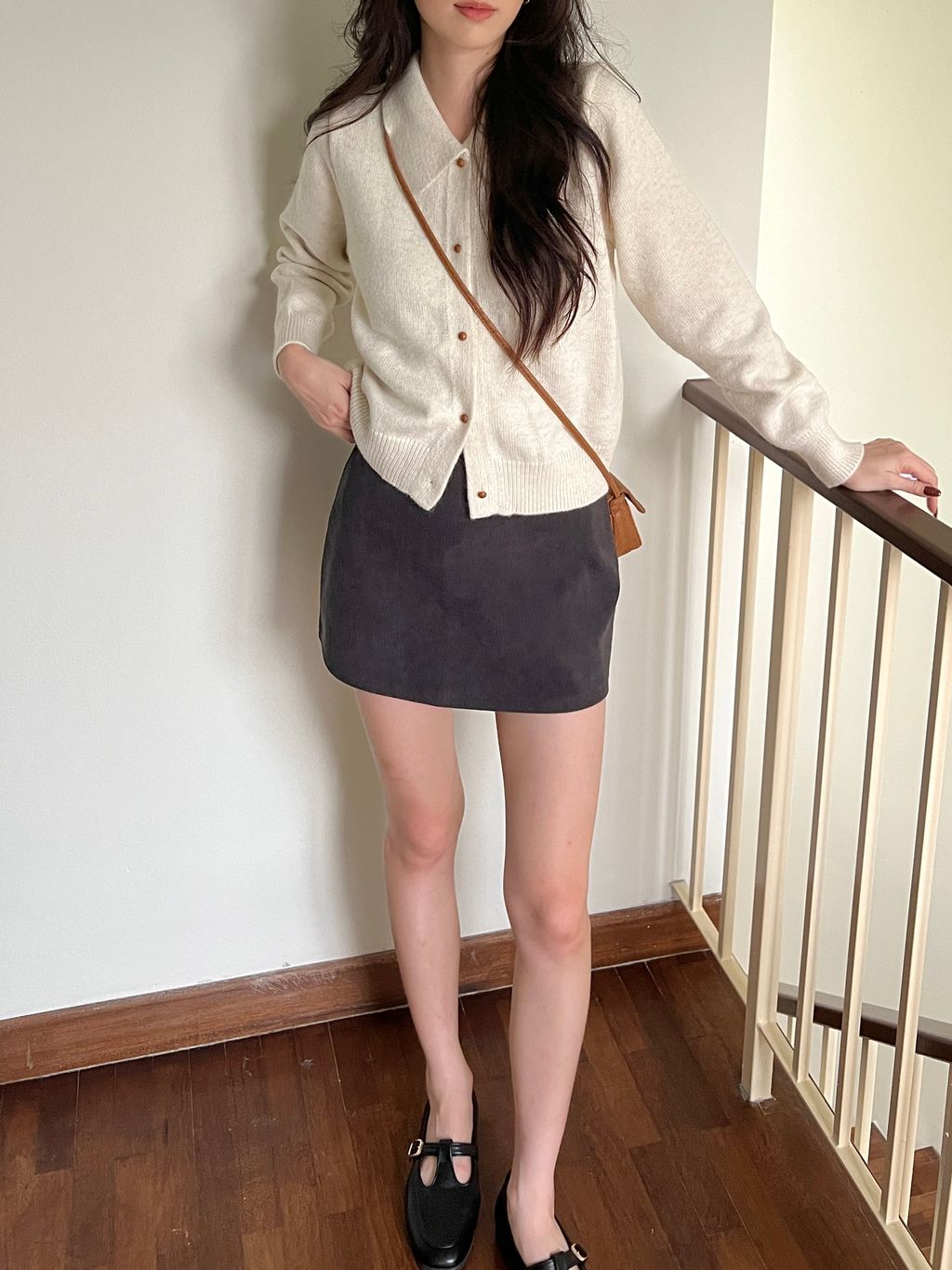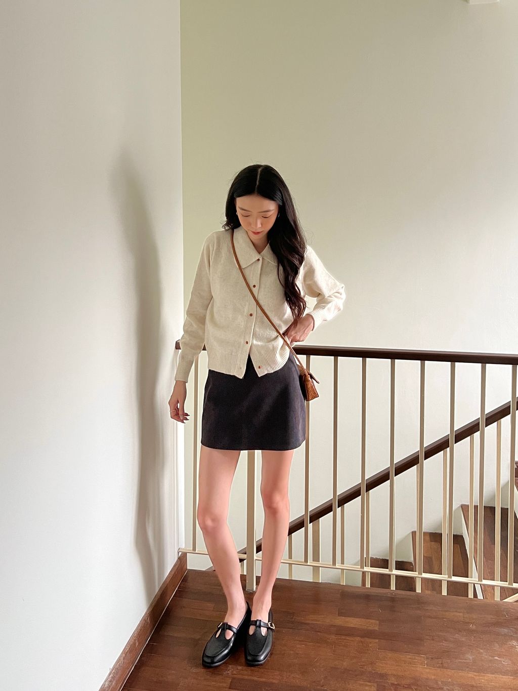 Other products featured in photos: Corduroy Belted Skirt (Grey)