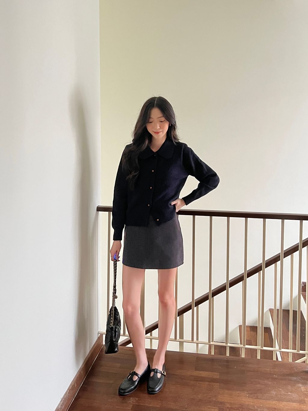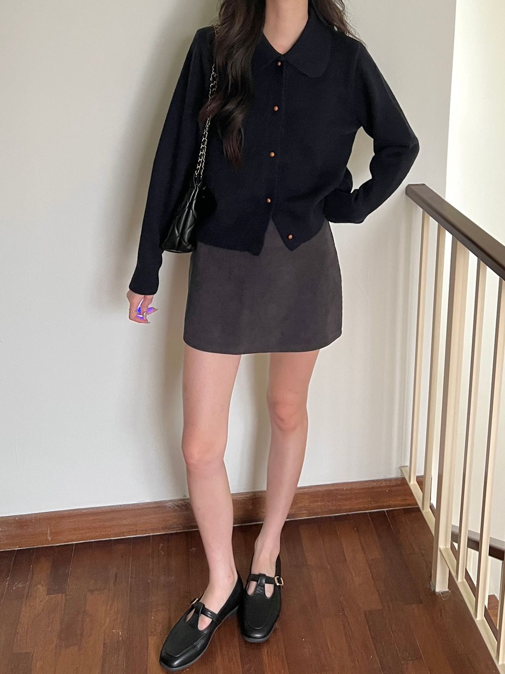 Other products featured in photos: Corduroy Belted Skirt (Grey)